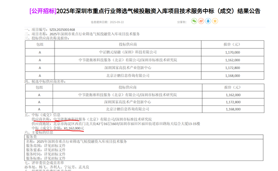 9月26日,研究中心所属中节能衡准公司中标深圳市生态环境局“2025年深圳市重点行业筛选气候投融资入库项目技术服务”项目,标志着中节能衡准公司在气候投融资技术服务领域再获认可。